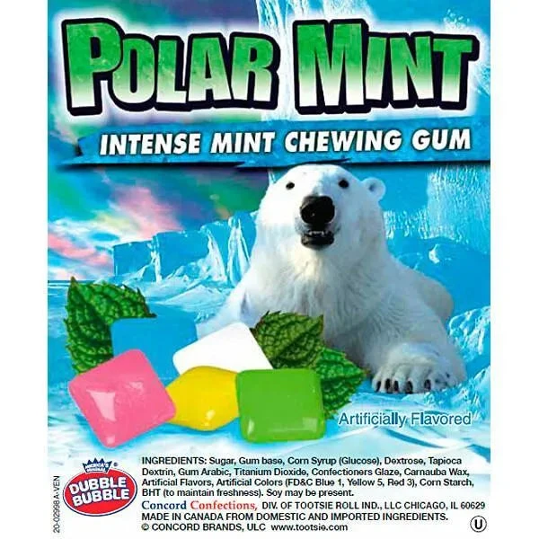 Jar contains 1.5 pounds of Dubble Bubble Polar Mint Chiclets Chewing Gum Tabs… that’s about 500 pieces.