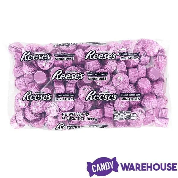Bag contains 200 pieces of Pink Foiled Mini Reese’s Peanut Butter Cups… that’s 66.7 ounces of candy.
